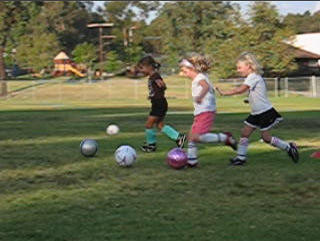 Twins dribbling at first soccer practice